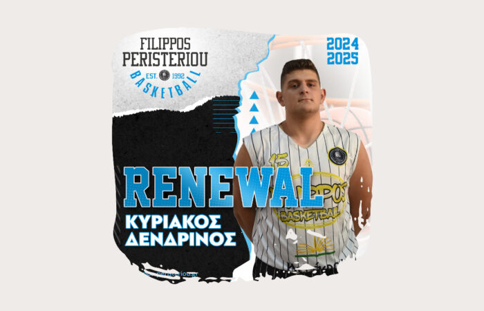 Ο Α.Π.Σ. Φίλιππος Περιστερίου ανακοινώνει την ανανέωση της συνεργασία του με τον Κυριάκο Δενδρινό.
