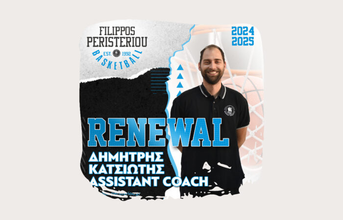 Ο Α.Π.Σ. Φίλιππος Περιστερίου ανακοινώνει την ανανέωση της συνεργασία του με τον assistant coach Δημήτρη Κατσιώτη.